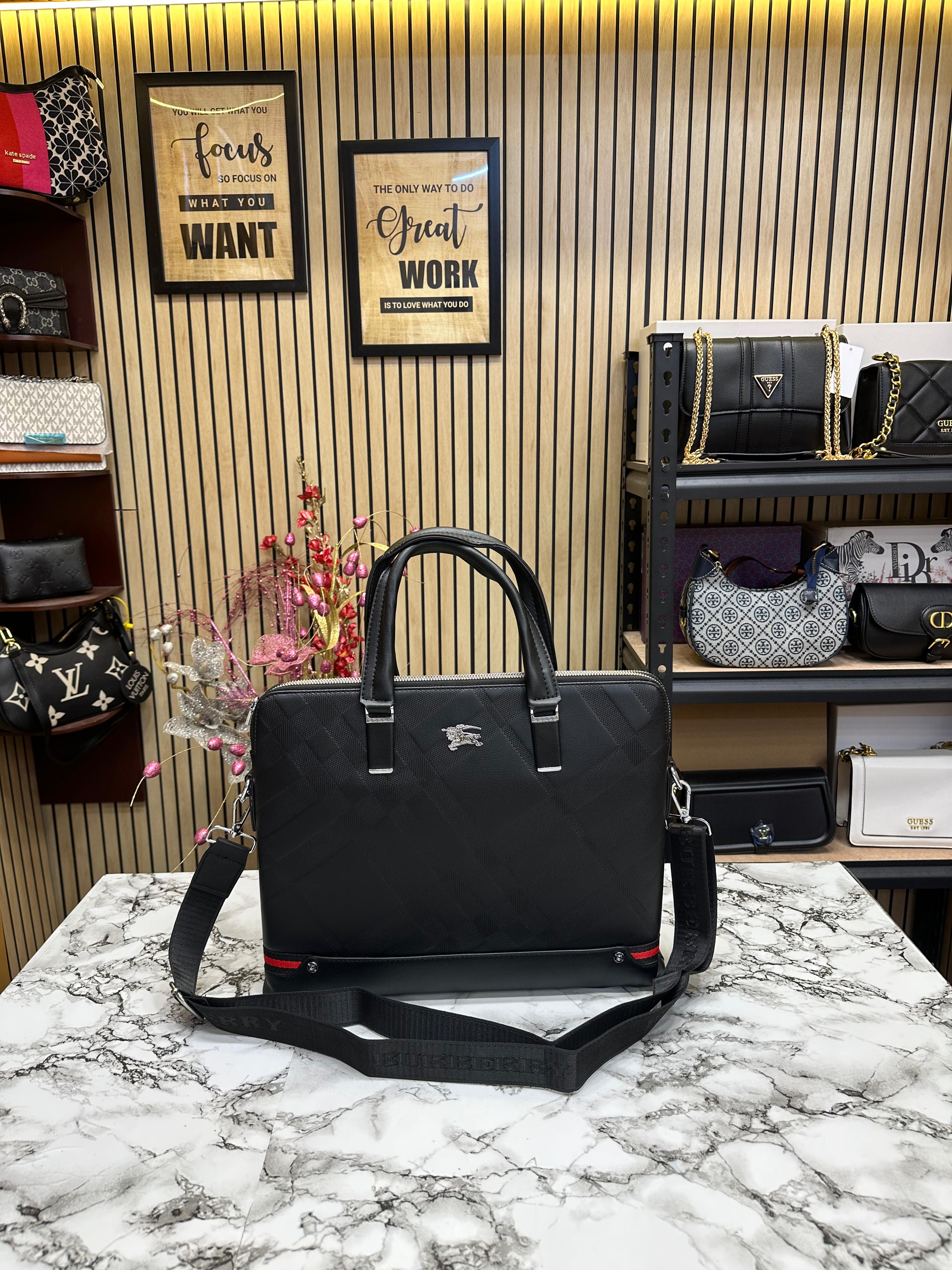 Step into elegance with the Burberry Check Canvas Laptop Bag. Crafted from the signature Burberry check canvas, this laptop bag seamlessly combines classic style with modern functionality. The bag features premium leather trim and polished hardware, reflecting Burberry’s commitment to luxury and craftsmanship. Inside, you'll find a spacious, organized interior to securely carry your laptop, documents, and other essentials. The adjustable shoulder strap ensures comfort and versatility, making it the perfect companion for the discerning professional. Elevate your work attire with this sophisticated piece from Burberry.