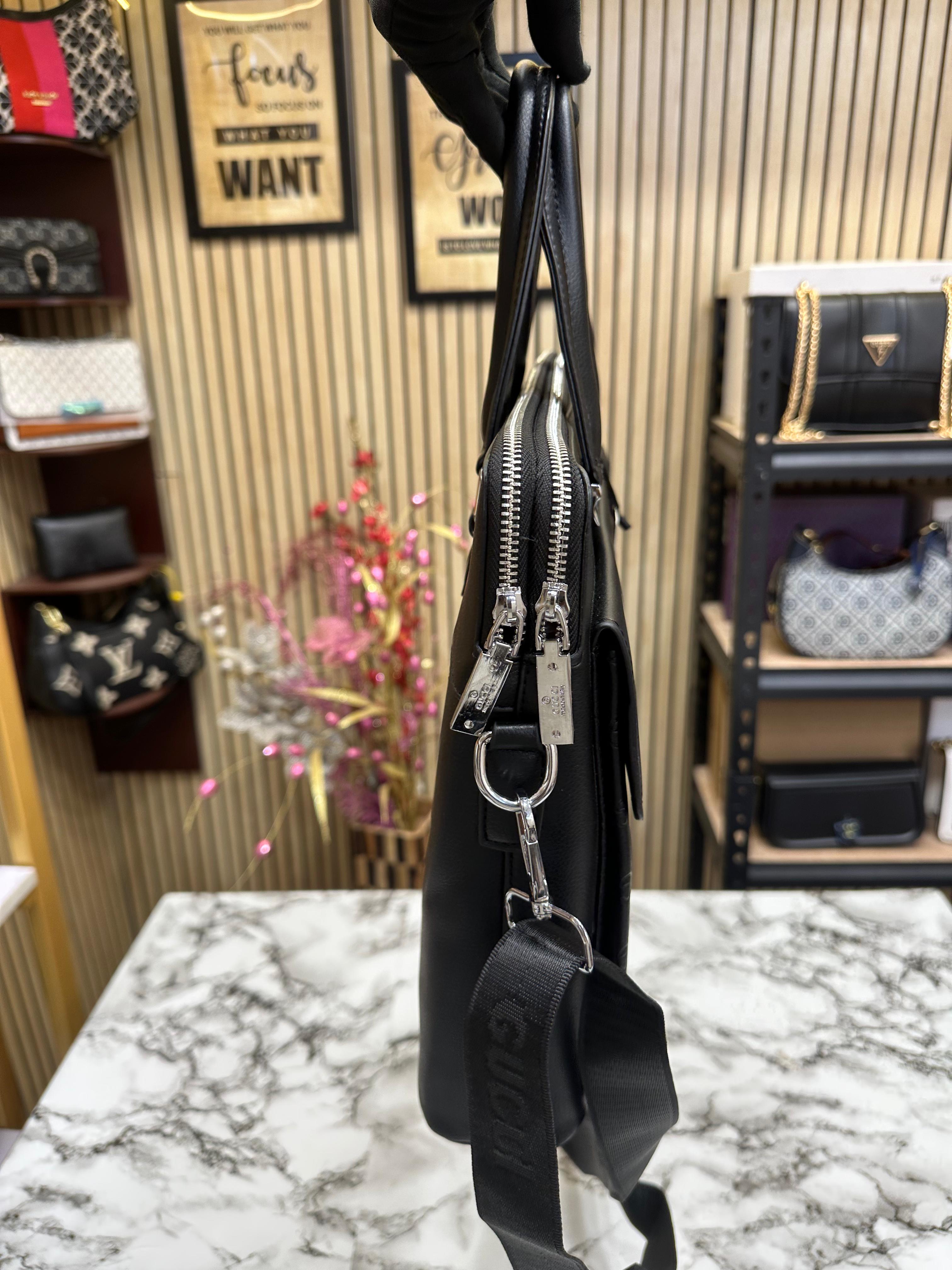Embrace sophistication and functionality with the Gucci Bind Leather Laptop Bag. Crafted from premium leather, this exquisite bag features the iconic Gucci design elements, including the signature interlocking G pattern. The spacious interior is thoughtfully designed to accommodate your laptop, documents, and other essentials, making it perfect for both professional and personal use. With its elegant leather trim and adjustable shoulder strap, the Gucci Bind Laptop Bag offers a perfect blend of style and comfort. Elevate your everyday carry with this timeless piece from Gucci.