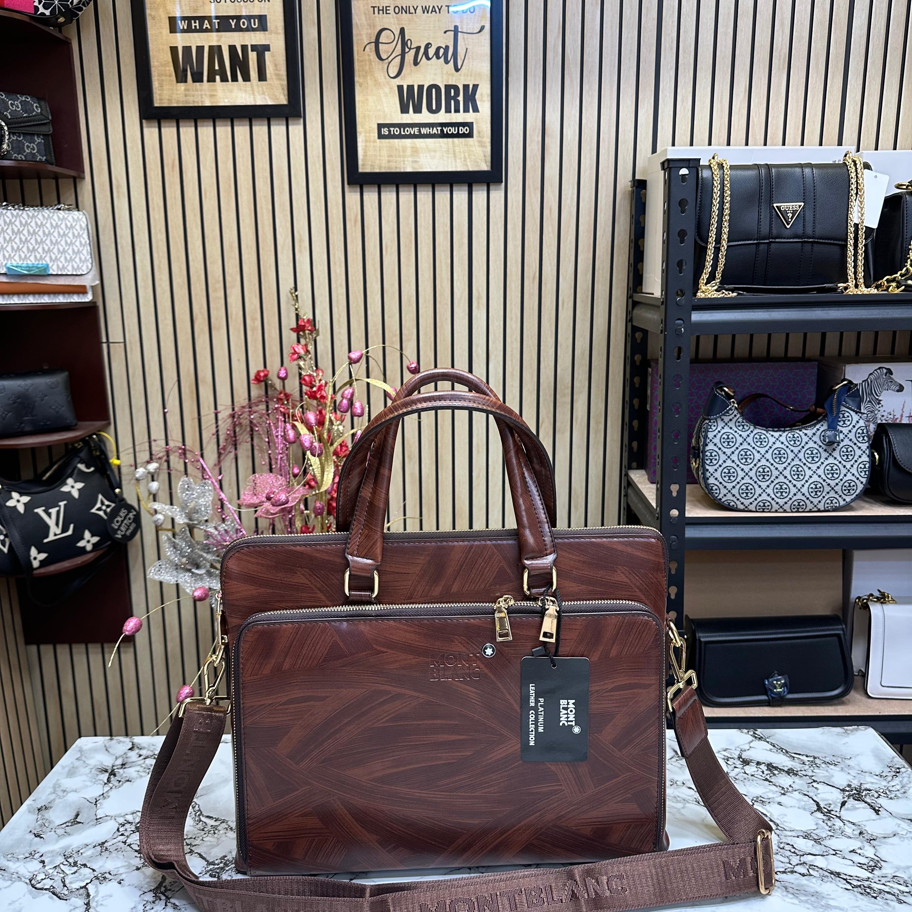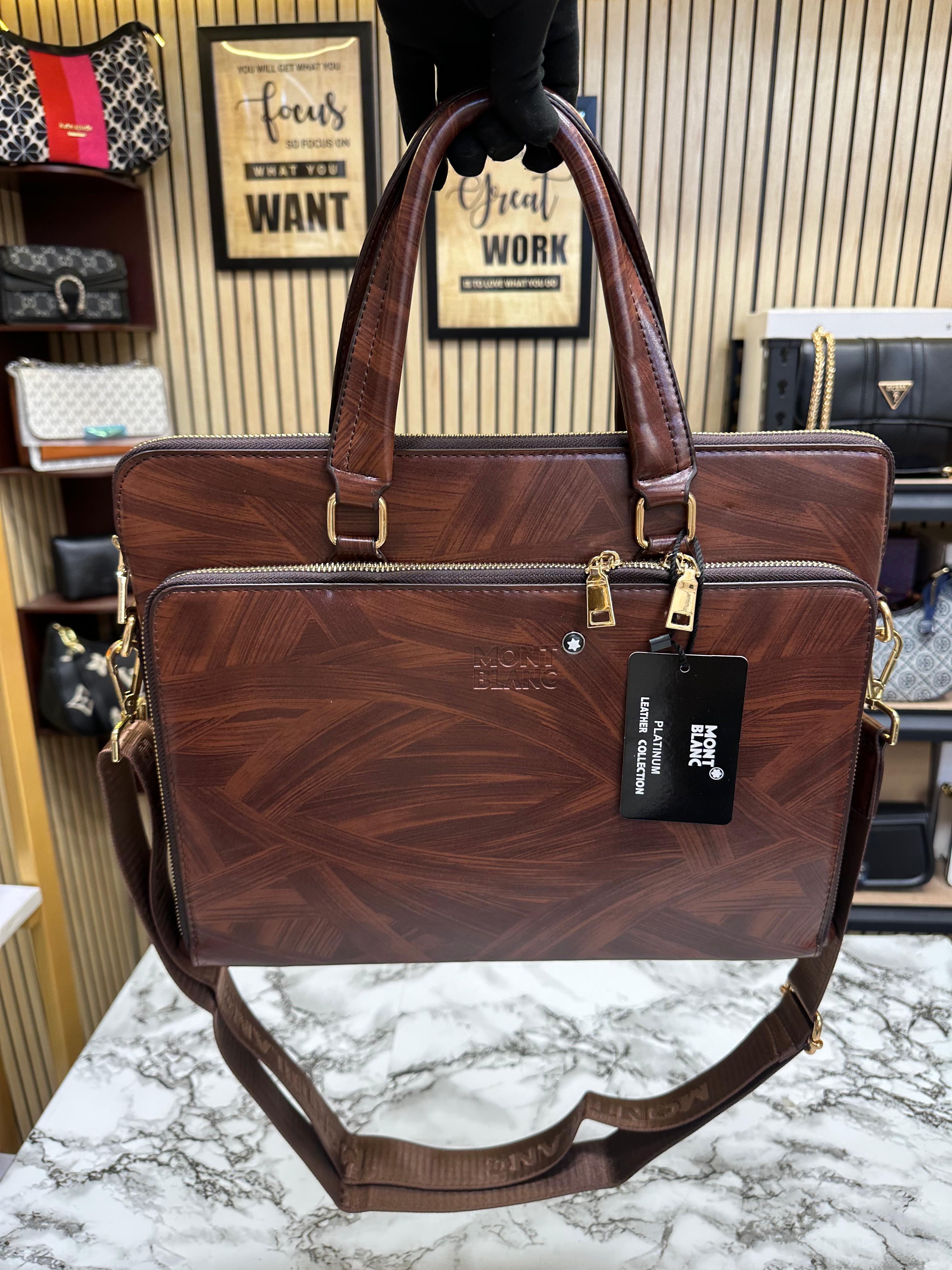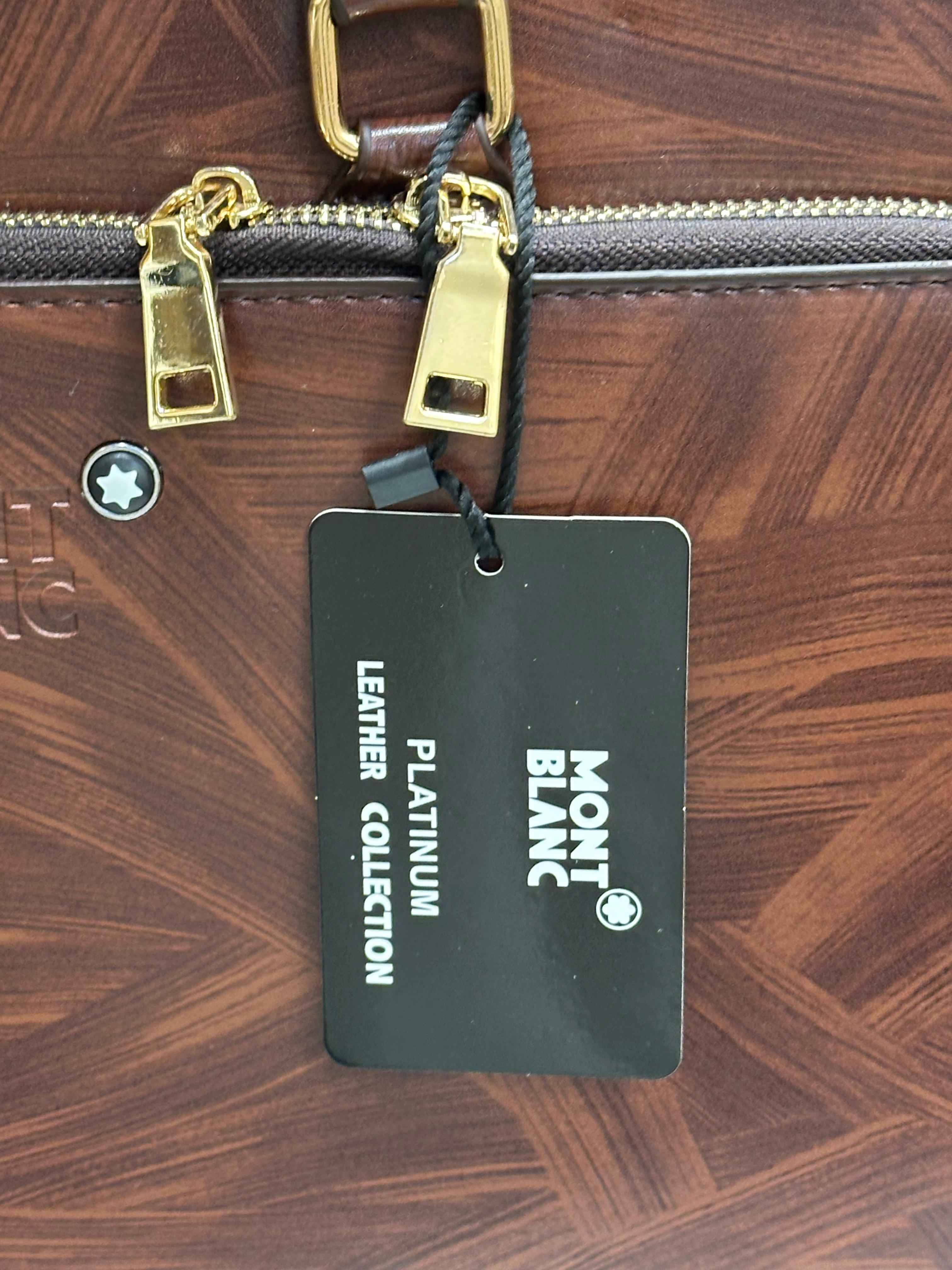 Mont Blanc Leather Laptop Bag: This bag is made from durable leather and features a spacious interior, multiple compartments, and a padded laptop sleeve. It's perfect for work, school, or travel.